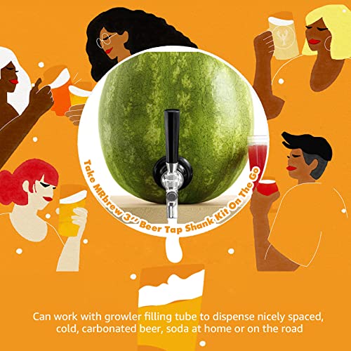 MRbrew Draft Beer Long Shank Faucet Kit, 3'' Beer Shank No Leak 1/4'' Beer Line Nipple Barb Fitting Shank Beer Tap for Kegerator Brewing with Self-Closing Tap, Stainless Steel Core for Home Beer Party