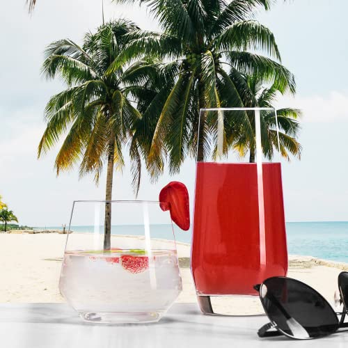 • Mfacoy Drinking Glasses Set of 8-4 Tall Glass Cups 18 oz & 4 Short Stemless Wine Glasses 13 oz, Highball Glasses, Glassware Sets for Cocktail, Beer, Wine, Whiskey, Water & Juice Drinkware