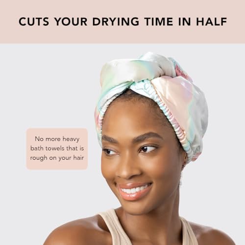 Kitsch Satin Wrapped Microfiber Hair Towel Wrap for Women - Anti-Frizz Quick Dry Hair Towels, Super Absorbent Microfiber Towel for Hair, Hair Drying Towel Wrap, Hair Turban Towel for Wet Hair - Aura, 1 Count (Pack of 1)