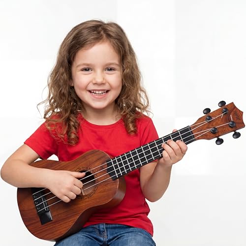 Raimy 17in Kids Ukulele Guitar - 4 Strings Mini Guitar Children Musical Instruments Educational Toys with Picks for Toddler Kids Boys Girls Beginner (Mahogany), Wooden Color Item Sku:
