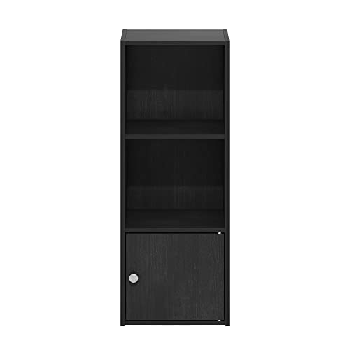 Furinno LUDER Book Shelf, 3-Tier Modern Bookshelf, Bookcase with 1 Door Storage Cabinet, 9.3" x 12" x 31.5", for Living Room, Bedroom, Home Office, Blackwood, 3-Cube with Cabinet Item Sku: