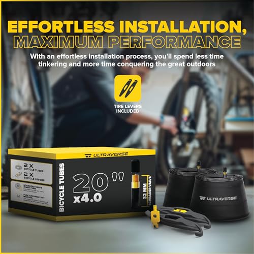 Ultraverse 20 x 4.0 Inner Tube Set with Schrader Valve - Ideal for Mountain Bikes & E-Bikes with 20-Inch Fat Tires - Durable & Reliable Performance- 2 Pack with Tyre Levers, Black, 20 inch x 4.0 Item Sku: