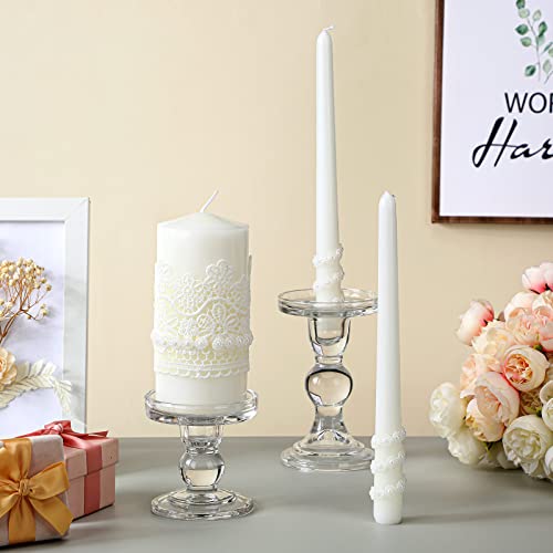 Irenare 3 Unity Candles with Candle Holder for Wedding Ceremony Wedding Accessories for Reception Ceremony Decorative Glass Candle Holder Pillar Candle for Formal Events Wedding Church Holiday Decor