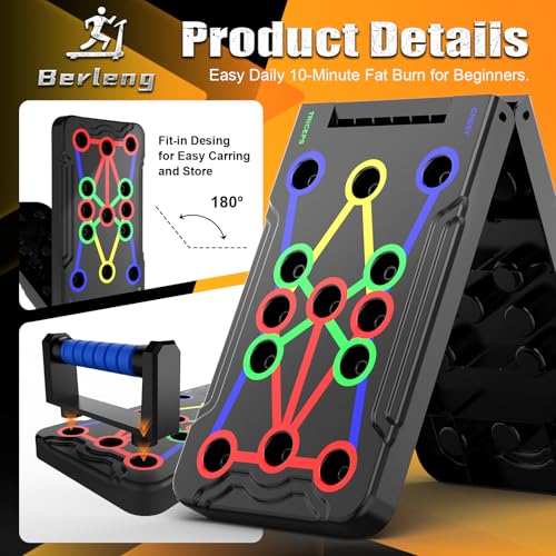 Berleng Push Up Board - 36-in-1 Foldable Pushup Fitness Stand for Portable Strength Training. Rugged, Stable Equipment for Home Gym Workout for Men & Women