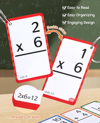 JoyCat Flash Cards for Kids Ages 4-8, Math Flash Cards & Chart, Math Learning Tools Game for Addition Subtraction Division Multiplication, Fit for Kindergarten 1st 2nd 3rd 4th 5th 6th Grade, Medium Item Sku: