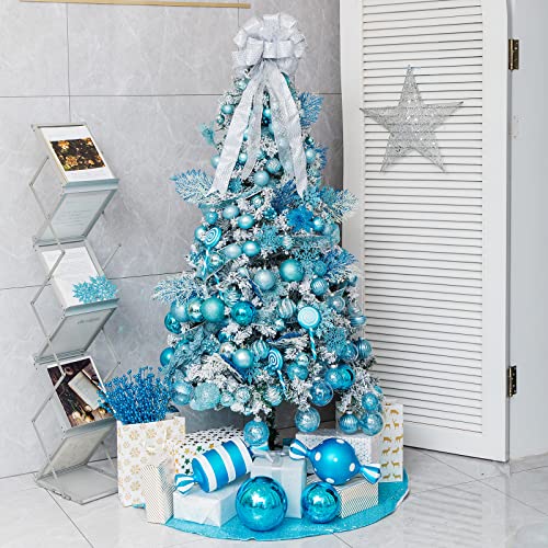 XmasExp Large Christmas Ball Ornaments,4pcs Light Blue Giant Shatterproof Plastic Hanging Mercury Xmas Ball Decorations Christmas Tree Ornaments (Lake Blue, 4")