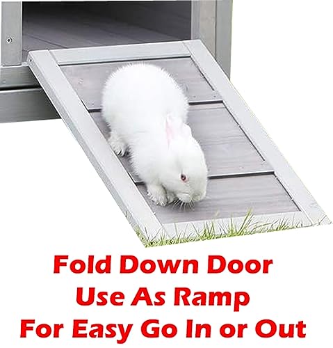 • Extra Large 47" Classic Double Story in/Outdoor Guinea Pig Cage Rabbit Wooden Hutch Chicken Coop Cat Home On Rolling Wheels House with Ramp Hideout Room with Two NO Leak Washable Pull Out Tray