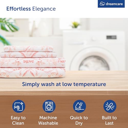 DREAMCARE Queen Size Sheets - Floral Sheets Queen Size Bed Set - 4pcs Queen Sheet Set - Cooling Bed Sheets - Queen Size Sheet Sets - Soft & Long Lasting 100% Brushed Floral Bed Set - Floral Pink