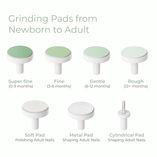 Momcozy Baby Nail File Electric, Gentle Baby Nail Trimmer Electric, Baby Nail Clipper with Night Light, 7 Grinding Head Replacement Pads, Green Item Sku: