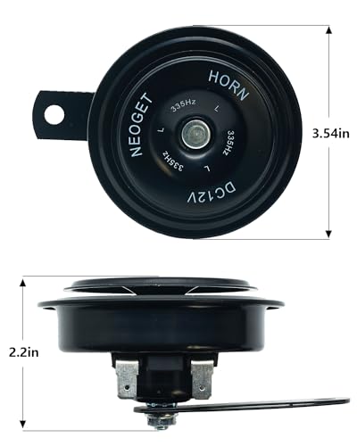 • NEOGET Car Horn 12V Electric Universal Disc Horn Metal Super Loud High Low Twin Tone Fit Motorcycle Vehicles Truck Replacement Kit with Bracket (Black)