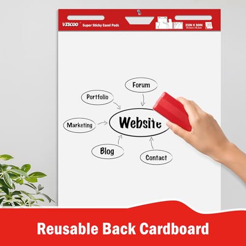 VISCOO Sticky Easel Pad, 25 x 30 Inches Large Chart Paper for Teachers, 10 Pads Self Stick Easel Paper for White Board, White Sticky Anchor Chart Paper, with Sticky Note & Markers, 30 Sheets/Pad, 10 Pack Item Sku: