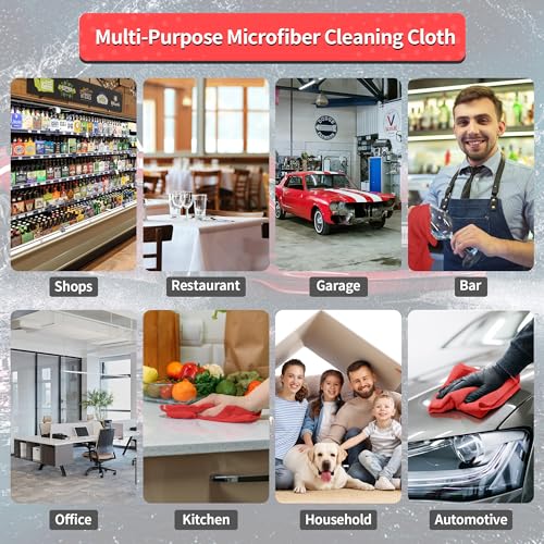 HOMERHYME Shop Towels Rags, 100 Pack Microfiber Cleaning Cloth Bulk Absorbent Detailing Rags, Lint-Free Microfiber Towels for Cars, Mechanic, Shop, Garage & Housekeeping 11.5"*11.5" Red