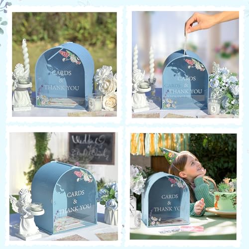 • OurWarm Wooden Wedding Card Box for Reception, Blue Gift Card Box with Acrylic Window, Boho Wedding Envelope Money Card Boxes for Baby Shower Birthday Graduation Party Wedding Decorations