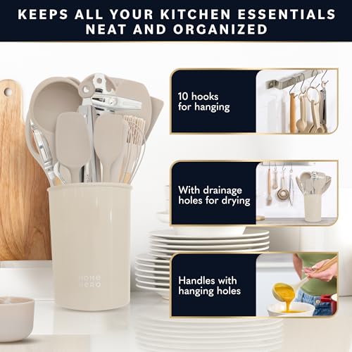 Home Hero 44 Pcs Silicone Kitchen Utensils Set, Non-Stick Silicone Cooking Utensils Set with Spatula, Wooden Handle Spatula, Silicone Kitchen Gadgets Utensil Set (44 Pcs - Stone)