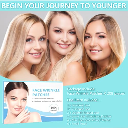 Wrinkle Patches for Face Overnight, 208 PCS Face Wrinkle Patches for Anti Face Facial Forehead Wrinkle, Sleep Face Tape for wrinkles to Reduce Fine Wrinkles, Frown and Smile Lines for Women & Men