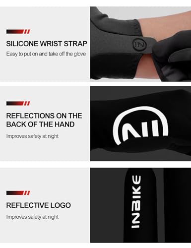 INBIKE Breathable Bike Gloves for Men Women, Full Finger Gel Pad Cycling Gloves, Touchscreen Mountain Biking Gloves, Reflective Bicycle Gloves, Anti-Slip Workout Gloves Black Large