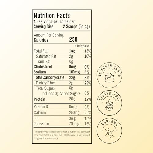 FlavCity Vegan Almond Protein Powder, Vanilla Cream + Collagen Peptides, Reishi & Cordyceps - Focus, Skin, Hair & Joint Support - 100% Grass Fed Whey, Organic Fruit All in One Smoothie, 20 Servings, 2.03 Pound (Pack of 1)
