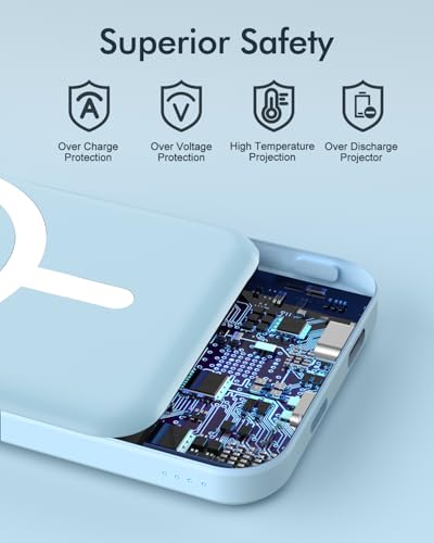 podoru for Magsafe Battery Pack, 5000mAh Magnetic Power Bank with Type-C Cable 20W PD Fast Charging Lighting Input Wireless Portable Charger for iPhone 17/16/15/14/13/12/ All Series-Sierra Blue Item Sku: