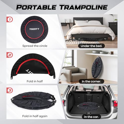 tozott 40" Rebounder for Adults,Mini Rebounder Foldable Fitness Rebounder with Adjustable Foam Handle,for Indoor/Outdoor Exercise Workout,Max Load 450LBS, black, ‎40-inch