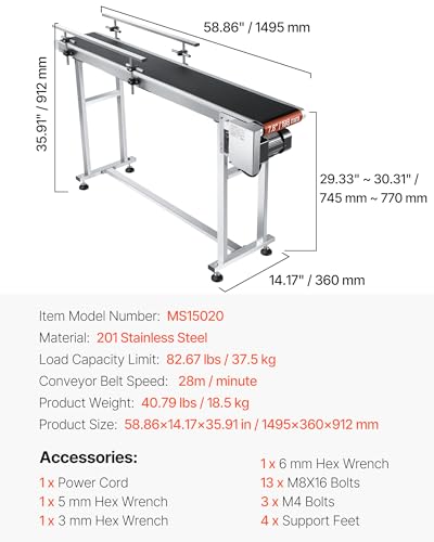 • VEVOR Belt Conveyor, 59 x 7.8 inch Conveyor Table, Heavy Duty Stainless Steel Motorized Belt Conveyor for Inkjet Coding Applications Powered PVC Belt Anti-Static Adjustable Speed (Double Guardrail)