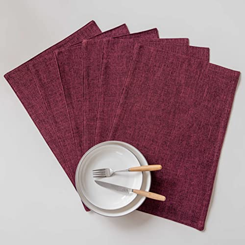 Home Brilliant Red Placemats Set of 8 Cloth Placemat for Holiday Heat Resistant Dining Table Mats Kitchen Washable Place Mats, Wine Red
