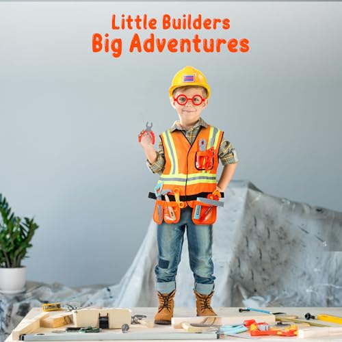 Cosmic Chameleon Construction Toys - 13Pc Pretend Play Set with Kids Construction Hat, Vest & More - Boys & Girls Tool Set - Halloween Costume, Birthday Gift, Orange, child-size Item Sku: