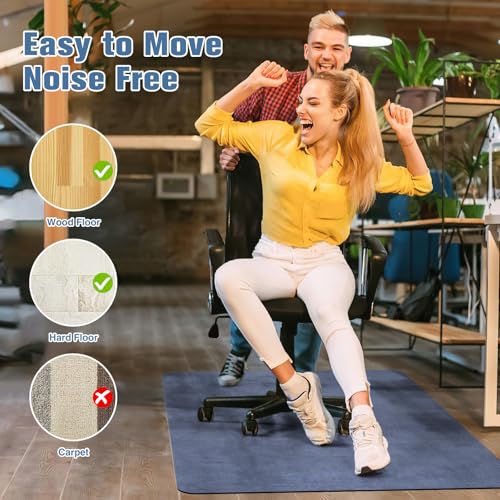 Placoot Office Chair Mat for Hardwood Floor, 55"x35" Corduroy Surface Computer Chair Mat, Desk Chair Mat, Large Anti-Slip Rubber Bottom Floor Protector for Home Office Brown, Corduroy Navy, 55"×35"