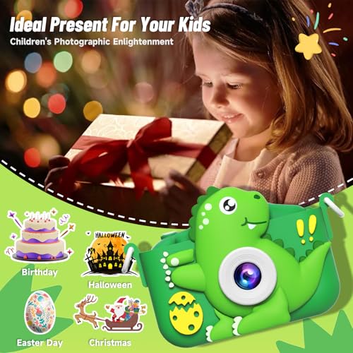 • MindPal Selfie Kids Camera,Dinosaur Christmas Birthday Gifts for Kids, 1080P HD Digital Video Camera with 32 GB SD Card for Toddlers, Practical Children Toys for 3 4 5 6 7 8 9 Years Old Boys Girls