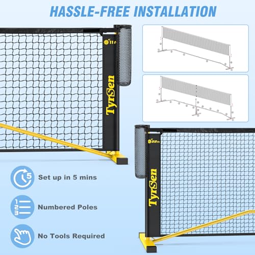 • TYRSEN Portable Pickleball Net for Driveway, 22 FT Regulation Size & 11 FT Half Court Size Pickleball Net with Ball Collector, 2-in-1 Pickle Ball Net with Carry Bag for Outdoor Indoor Garages