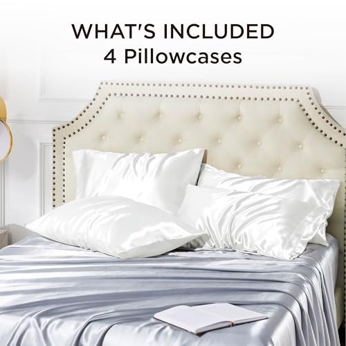 Bedsure Satin Pillowcase for Hair and Skin Queen - Pure White Silky Pillowcase Set of 4 with Envelope Closure, Similar to Silk Pillow Cases, Gifts for Women Men, 20x30 Inches