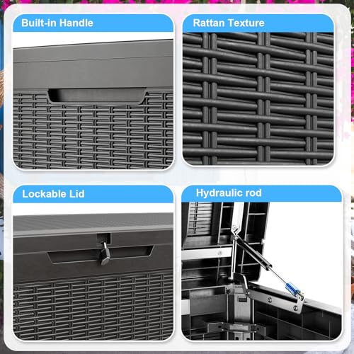 PatioZen 260 Gallon Large Deck Box,Resin Outdoor Storage Box with Lockable for Patio Furniture, Pool Accessories, Garden Tools Waterproof Outside Storage Box, Black