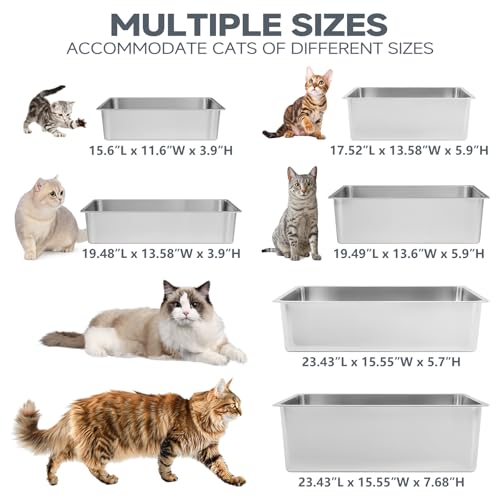 Kirecoo Stainless Steel Cat Litter Box XXL- Metal High Sided Cat Pan, Large Stainless Steel Box, Indoor Litter Tray, Non Stick, No Smell, Easy to Clean, Pet Toilet Supplies for Kitten, Kitty, Rabbit, Silver, 23.43" L x 15.55" W x 7.68" H Item Sku: