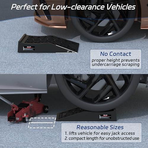 • TOWKING Car Ramps for Oil Changes and Lift, Portable Low Profile Car Ramps for Garage, Heavy Duty Tire Ramps for Low Chassis Cars and Support Jack, 2pcs