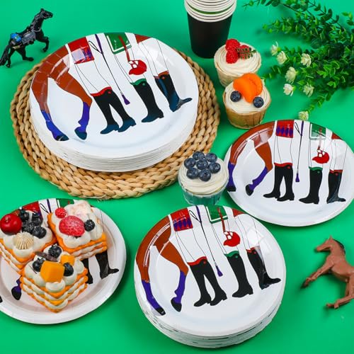 Yungyan 50 Pcs Derby Party Plates Disposable Paper Plates 9 Inch 7 Inch Dinner and Dessert Plate Festival Party Decorations Tableware