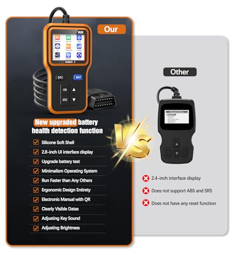 UMEIJA OBD2 Scanner with Upgrade Battery Tester - Diagnostic Tool for Cars That Check Engine Light & Emissions Readiness Read and Clears Vehicle Error Codes for All OBD II Protocol Vehicles Since 1996, orange Item Sku: