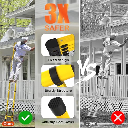 LUISLADDERS Telescoping Ladder, 12.5ft Aluminum Extension Folding Telescopic Ladder Lightweight 330lbs Max Capacity, Multi Purpose RV Ladder for Outdoor Work, Yellow