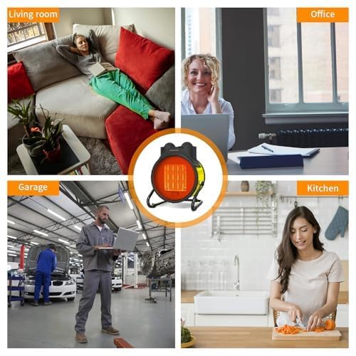 • Buyplus Outdoor Heaters for Patio - 1500W Portable Garage Heater with 90°Adjustable Angle, Overheat Protection & 2S Fast Heating, Electric Space Heater for Patio, Garage, Bedroom, Office (Yellow)
