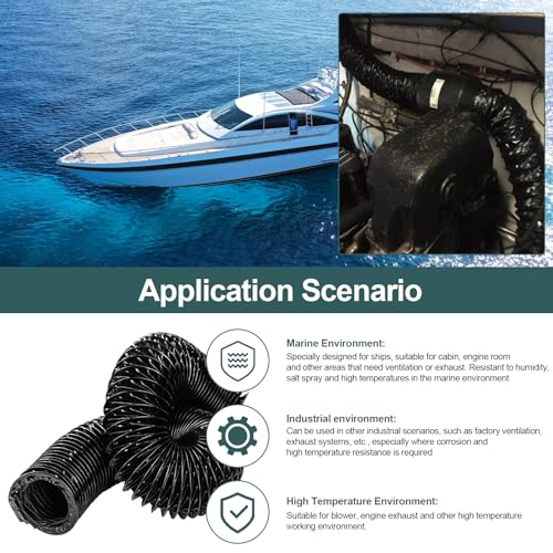 • 3" Marine Blower Hose Replacement for Boat Vent Bilge Blower Exhaust Fan, Marine Exhaust Hose Fit for 3 Inch Flexible Marine Blower Duct Hose, Ventilation Systems and Boat Bilge Heater, 10 Feet, Black
