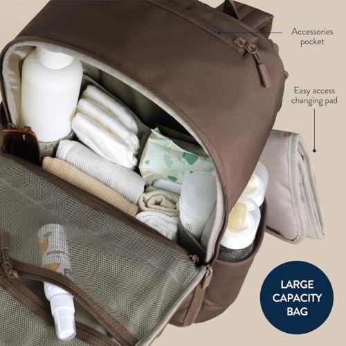 Itzy Ritzy Utility Diaper Bag Backpack – Features 17 Pockets (Including 2 Insulated Bottle Holders) & Trolley Sleeve and Includes Stroller Straps & Changing Pad – Part of the Belong Collection (Mocha), Large Item Sku: