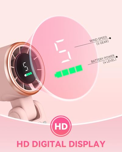 PlayHot Portable Handheld Turbo Fan, 5-Speed Personal Fans, 5000mAh Rechargeable Fans Up to 12 Hours, Weight only 0.6lb Small Fan, Hand/Neck/Desk Fan 3 IN 1, Beach Vacation Essentials(Pink) Item Sku:
