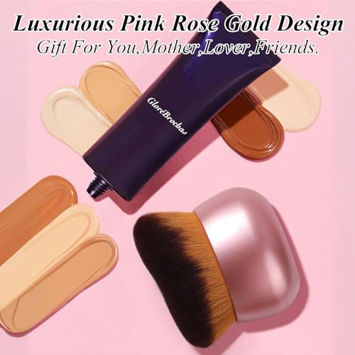 GloréBrochas 75MM Extra Large Self Tanner Kabuki Makeup Brush – Ultra Soft Dense Vegan Bristles for Body Makeup, Bronzer & Foundation–Applies Tanning Mousse, Lotion & Self Tanner–Rose Gold, Wet & Dry, ARose Gold