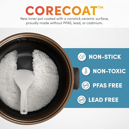 • AROMA® 20-Cup Slow Cook Rice Cooker and Brown Rice Cooker with Lift-Out Pot Handles and Silicone Storage Lid — PFAS-Free CoreCoat™ Ceramic