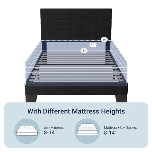 Allewie Twin Size Platform Bed Frame with Velvet Upholstered Headboard and Wooden Slats Support, Fully Upholstered Mattress Foundation/No Box Spring Needed/Easy Assembly, Black Item Sku: