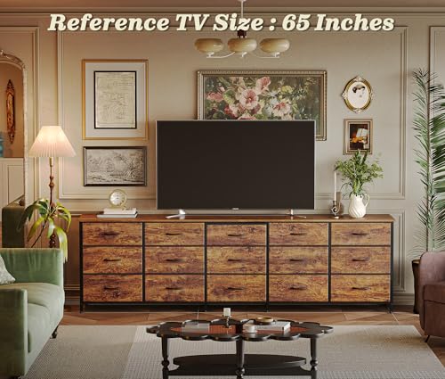 • Huuger 78.7 inch Long Dresser for Bedroom, 15 Drawer Fabric Dresser for Closet, Large TV Stand for 65, 75, 85 inch TV, Wide Chest of Drawer with Storage, 78.7" W x 12.9" D x 26.7" H, Rustic Brown
