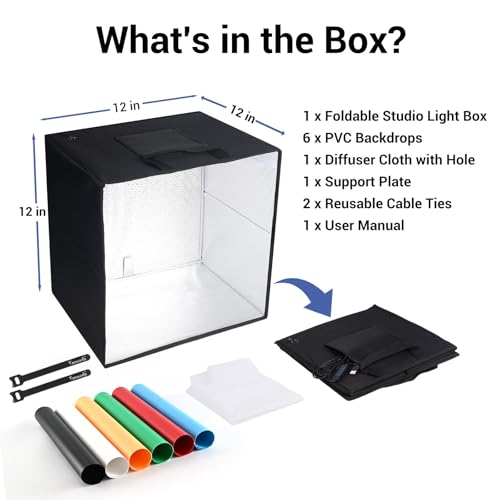 Yanuoda Photo Studio Light Box, Dimmable Shooting Tent Kit - 12"x12"x12" Foldable Lightbox with 120 LED (CRI 97), 6 Backdrops, 3 Light Modes, Photo Booth Box for Small Product Photography, multicolor, 12"x12"x12"