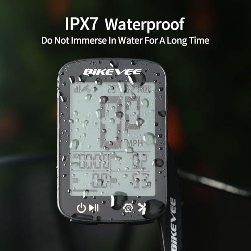 Bikevee Bike Speedometer GPS Wireless Cycling Computer – Auto Start/Stop, Auto Backlight, Waterproof Bicycle Odometer MPH KM/H, 2.4" LCD Display – Black
