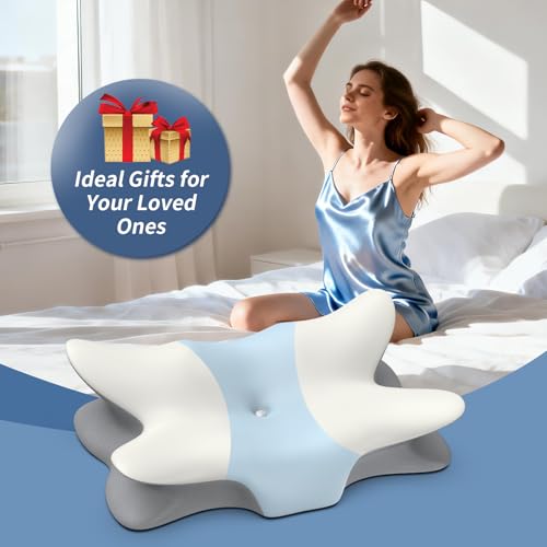 Besyodo Cervical Pillow for Neck and Shoulder Pain Relief - Ergonomic Neck Pillow for Sleeping, Contour Memory Foam Pillows Side Sleeper Pillow for Neck Support, Bed Pillow for Side Back Stomach Sleepers, White & Blue Item Sku: