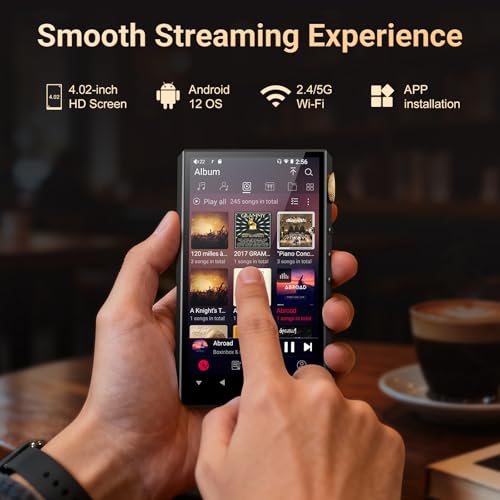 Hi-Res Audio Player, Oilsky 160GB HiFi MP3 Player Bluetooth and WiFi, 4.4mm Balanced, Dual ESS DAC, 4GB RAM, 4.02" Digital DSD512 Lossless Music Spotify Player, Black Item Sku:
