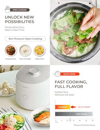 CUCKOO Twin Pressure Rice Cooker 6-Cup Uncooked / 12-Cup Cooked with Induction Heating Technology, Silent Pressure System, Open Cooking Mode, Dynamic Display, Eco Inner Pot, White (CRP-OHTR0609FW)