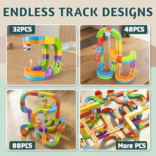• Wdebay klick Rail Electric Train Set 3D Magic Flexible Race Track for Kids 3 4 5 6 7 8 Years Old, Race Car Track with Anti-Gravity, Educational STEM LearningToy for Boys Girls Birthday